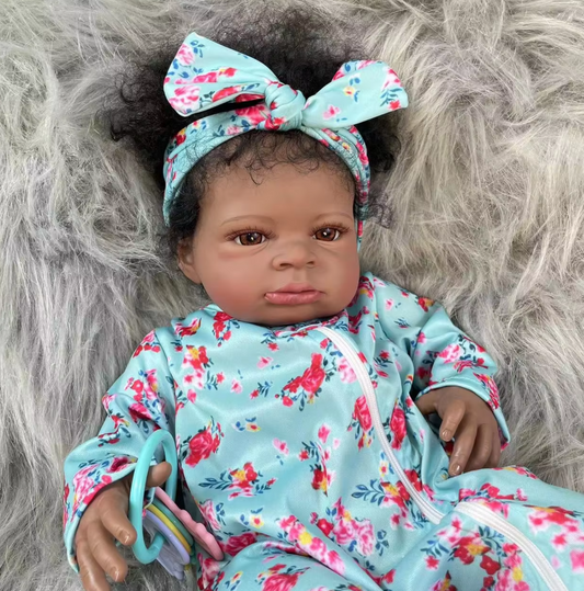 "Lanny" – 20-Zoll (ca. 50 cm) Afroamerikanische Reborn-Puppe mit dunkler Haut und handverwurzeltem Haar